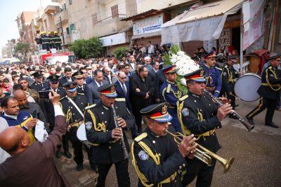 حيث تقدم محافظ كفرالشيخ صفوف المشيعين خلال الجنازة إلى مثواه الأخير بمسقط رأسه بمدينة بيلا، حيث أُقيم موكب جنائزي مهيب لتشييع جثمان الشهيد، وأُديت صلاة الجنازة بمسجد المرسي، في مشهد يعكس تقدير الدولة والمجتمع لتضحيات رجال الشرطة، وسط حضور شعبي كبير.