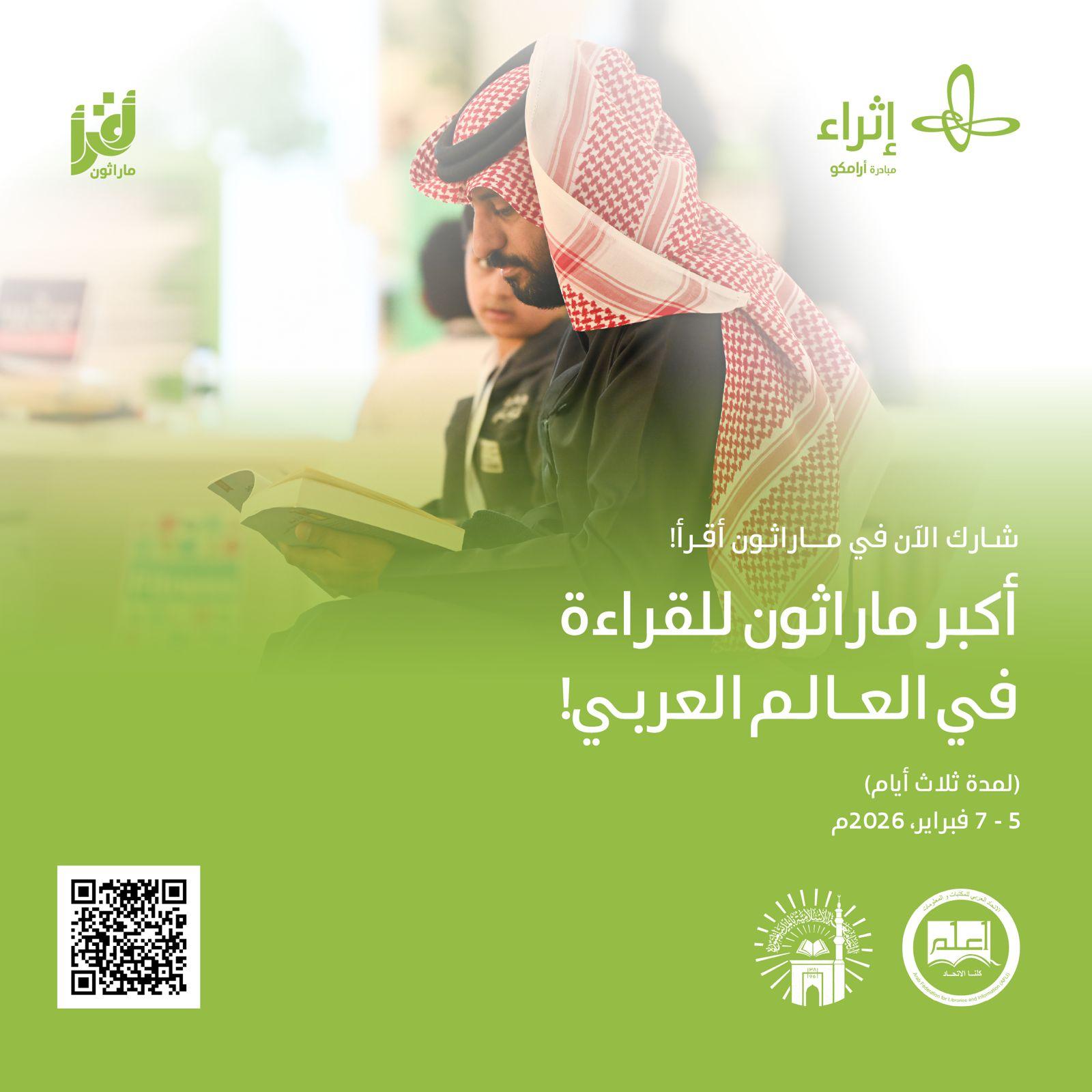 ويُنظَّم الماراثون من قِبل مركز الملك عبد العزيز الثقافي العالمي “إثراء”، ضمن مبادرات أرامكو السعودية، ويأتي امتدادًا لسلسلة من البرامج والمبادرات الهادفة إلى تعزيز ثقافة القراءة وتحفيز الاهتمام بالكتاب والمعرفة لدى مختلف فئات المجتمع.