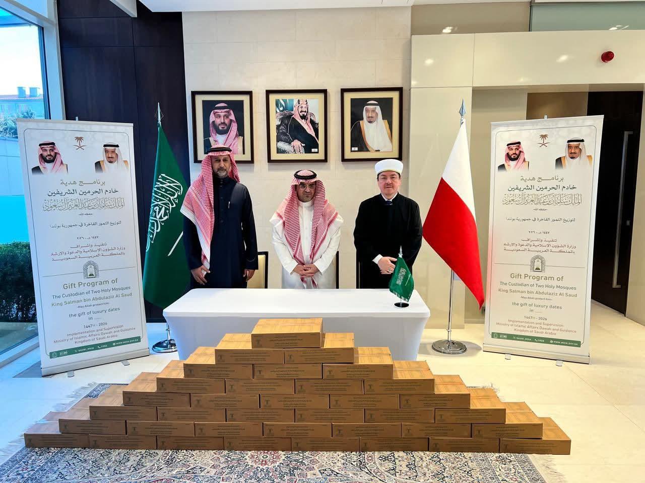 في لفتة تعكس قيم الكرم والتواصل الإنساني، نظمت سفارة المملكة العربية السعودية في وارسو، بالتعاون مع وزارة الشؤون الإسلامية والدعوة والإرشاد، مراسم تسليم هدية خادم الحرمين الشريفين الملك سلمان بن عبد العزيز آل سعود -حفظه الله- المتمثلة في كميات كبيرة من التمور لمسلمي جمهورية بولندا.