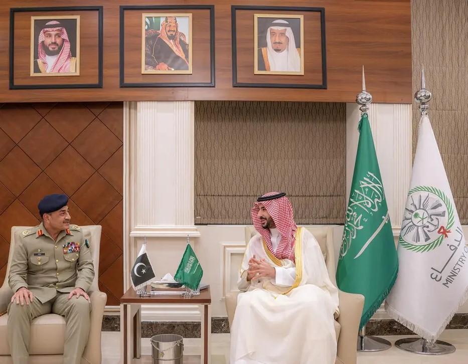 التقى صاحب السمو الملكي الأمير خالد بن سلمان بن عبدالعزيز وزير الدفاع في الرياض، معالي قائد قوات الدفاع قائد الجيش الباكستاني المشير عاصم منير.