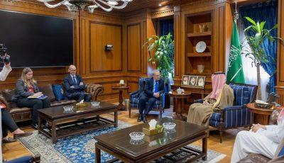 استقبل معالي وزير الدولة للشؤون الخارجية عضو مجلس الوزراء ومبعوث شؤون المناخ الأستاذ عادل بن أحمد الجبير، في مقر الوزارة بالرياض اليوم، المدير العام السياسي في وزارة الخارجية والكومنولث والتنمية بالمملكة المتحدة إدوارد لويلين.