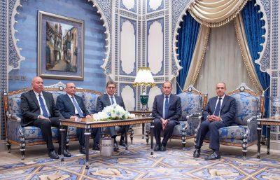 فيما حضر من الجانب المصري معالي وزير الخارجية والتعاون الدولي والمصريين بالخارج الدكتور بدر عبدالعاطي، ورئيس ديوان رئيس الجمهورية اللواء أحمد علي، ورئيس المخابرات العامة اللواء حسن رشاد، ومدير مكتب رئيس الجمهورية السيد عمر مروان، وسفير مصر لدى المملكة إيهاب أبوسريع، والمتحدث الرسمي باسم رئاسة الجمهورية السفير محمد الشناوي.