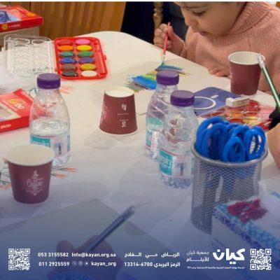 واستهدف البرنامج أطفال جمعية كيان من عمر 6 إلى 12 سنة، وشارك في تقديم الورش نخبة من المتخصصين والفنانين؛ حيث قدمت الدكتورة منى الحمود الفنانة التشكيلية ورشة رسم مميزة بعنوان “من الذي تخبئه الفرشاة” تضمنت أنشطة فنية متنوعة أبدع فيها الأطفال كما قدمت الأستاذة جوهرة العقيلي المتخصصة في الكتابة في أدب الطفل قصة رمضانية شيقة تخللتها تطبيقات فنية ممتعة.