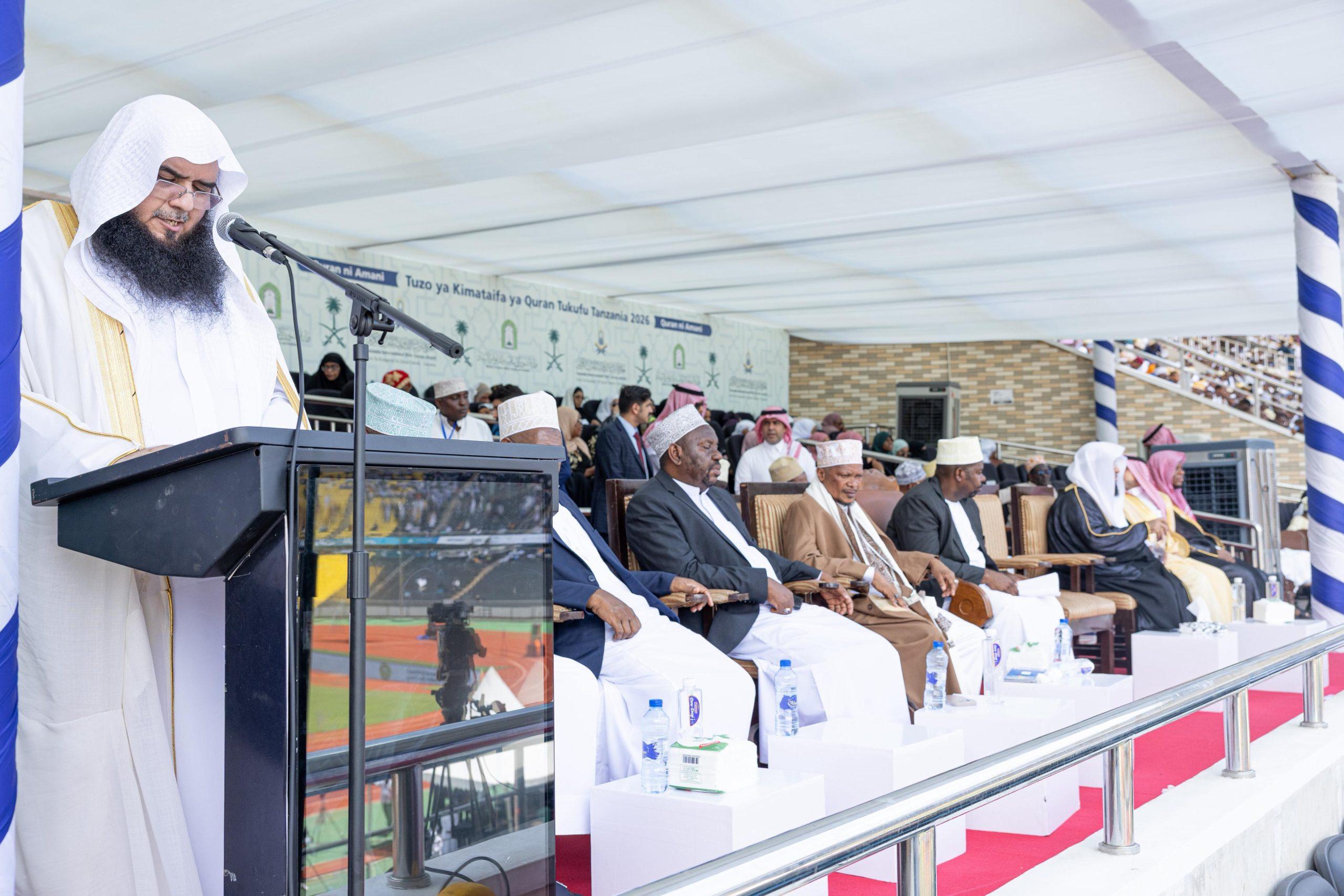 وأكد معالي وزير الشؤون الإسلامية والدعوة والإرشاد الشيخ الدكتور عبداللطيف بن عبدالعزيز آل الشيخ – في كلمةٍ نقلها نيابةً عنه المستشار بوكالة الوزارة للشؤون الإسلامية فضيلة الشيخ محمد بن عبدالواحد العريفي – أن إقامة هذه المسابقة القرآنية المباركة تأتي في ظل استمرار الاعتداءات الإيرانية السافرة التي تتعرض لها المملكة العربية السعودية، غير أن ذلك لم يثنِ عزيمة المملكة عن المضي قدمًا في أداء رسالتها الإسلامية، ومد جسور الصداقة والتعاون مع الأشقاء في جمهورية تنزانيا المتحدة، والعمل جنبًا إلى جنب لإظهار هذه المسابقة بالمستوى المشرّف الذي يشاهده الجميع اليوم – ولله الحمد –، وذلك إنفاذًا لتوجيهات خادم الحرمين الشريفين الملك سلمان بن عبدالعزيز آل سعود، وسمو ولي عهده الأمين الأمير محمد بن سلمان – حفظهما الله –، اللذين يوليان عناية كبيرة بدعم البرامج القرآنية وتعزيز حضورها عالميًا.