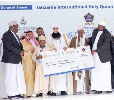 اختُتمت اليوم فعاليات مسابقة جائزة تنزانيا الدولية للقرآن الكريم في نسختها الرابعة والثلاثين، التي حظيت برعاية ودعم المملكة العربية السعودية ممثلةً بوزارة الشؤون الإسلامية والدعوة والإرشاد، ونظمها المجلس الأعلى للشؤون الإسلامية في جمهورية تنزانيا المتحدة، بمشاركة (26) متسابقًا يمثلون (26) دولة من مختلف دول العالم، وذلك في الملعب الوطني بالعاصمة دار السلام، وسط حضور جماهيري كبير تجاوز (60) ألف شخص.