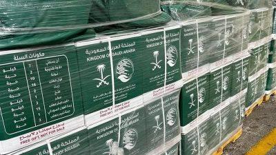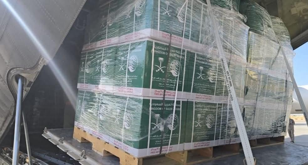 وقال مصدر مسؤول في المطار، إن الطائرة محملة بكمية من السلال الغذائية والحقائب الإيوائية المقدمة من مركز الملك سلمان للإغاثة والأعمال الإنسانية لصالح قطاع غزة.