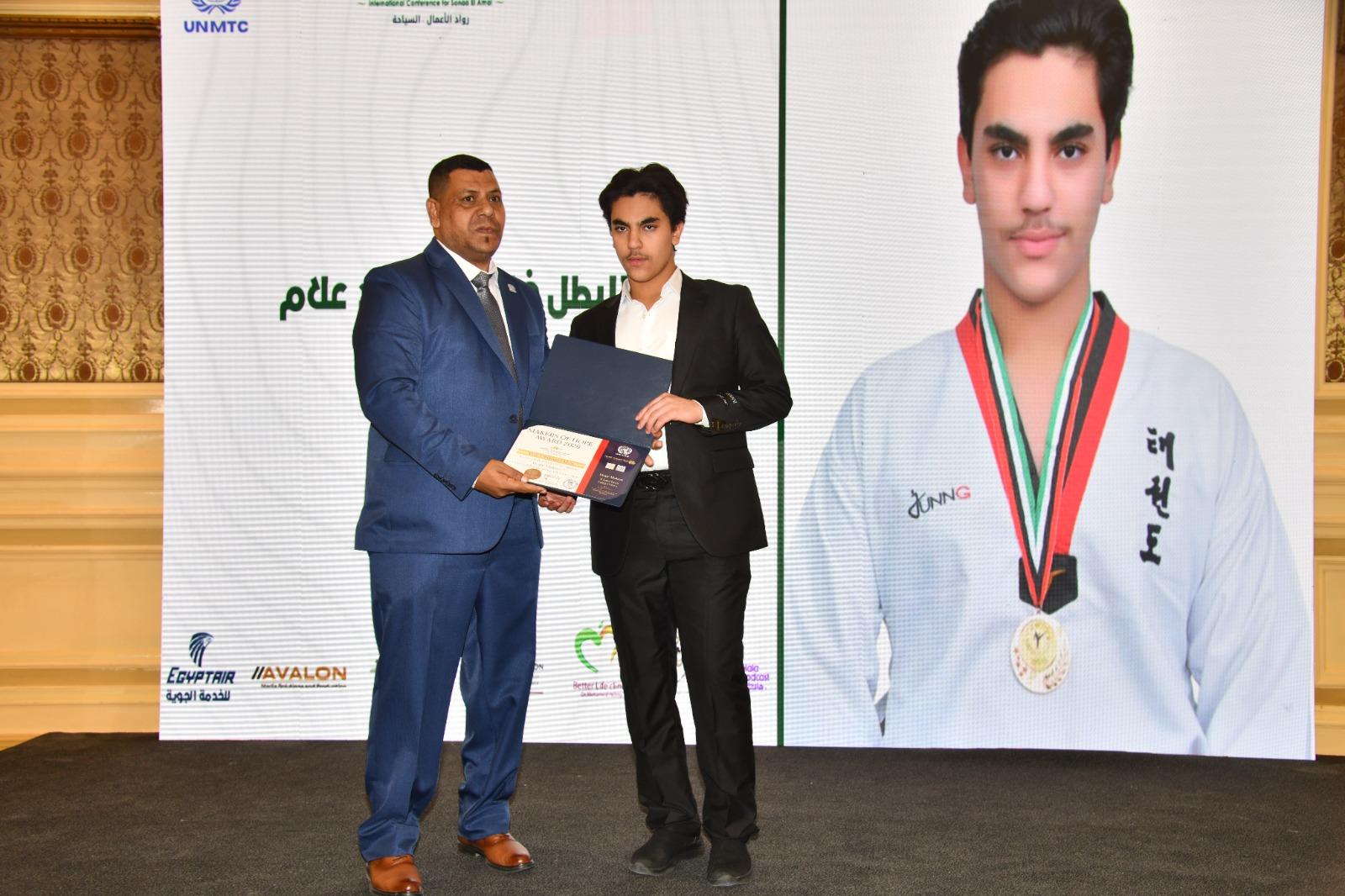 وقد شهدت الفعالية حضوراً بارزاً للدكتورة جيهان زكي، وزيرة الثقافة المصرية، التي شاركت في هذا المحفل الدولي لتكريم الشخصيات المؤثرة، مما أضفى صبغة رسمية وثقافية رفيعة على الحدث الذي نظمته منظمة الأمم المتحدة للتدريب والإعلام، سلم البطل خالد محمود علام الجائزة مدير عام المنظمة في منطقة الشرق الأوسط وشمال أفريقيا الاستاذ محمد أبوزيد.