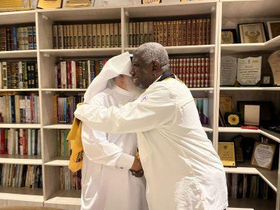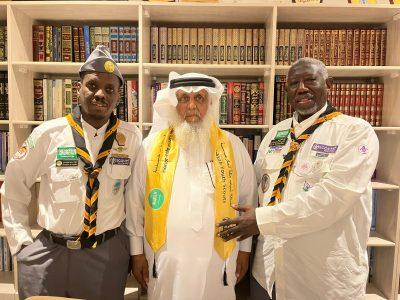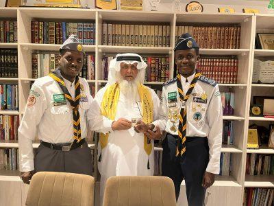 وفي نهاية الزيارة قام القائد الكشفي علي بكر هوساوي بتقليده الوشاح الكشفي الجديدة لفريق كشافة شباب مكة المكرمة فيما تسلم المدلية التذكارية من رائد عشيرة جوالة كشافة شباب مكة المكرمة الجوال ادم دواد عبده أبوبكر وقدمت له العديد من الصيحات والمنلوجات والأناشيد الكشفية بهذه المناسبة السعيدة والتاريخية والاجتماعية والكشفية.