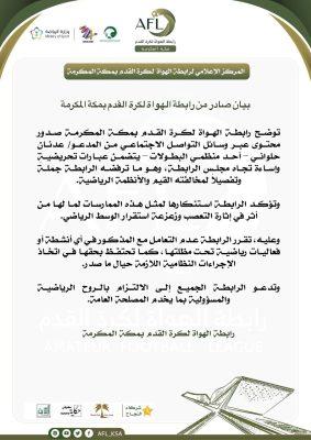 أصدر رئيس رابطة الهواة بمكة / ثابت قوقندي بيانا جرئي ضد كل من يخالف تعليمات رابطة الهواة أمس الجمعة ، في خطوة غير مسبوقة على مستوى روابط المملكة، حيث أصبح الجميع تحت مظلة النظام والقانون.