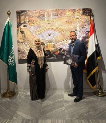 وشكّل المعرض الذي أهدته الفنانة إلى خادم الحرمين الشريفين الملك سلمان بن عبد العزيز، وسمو ولي العهد الأمير محمد بن سلمان، نافذة فنية تعكس الجهود الكبيرة التي تبذلها المملكة في خدمة الحرمين الشريفين وقاصديهما، من خلال طرح بصري يجمع بين التوثيق التاريخي والرؤية الإبداعية المعاصرة.