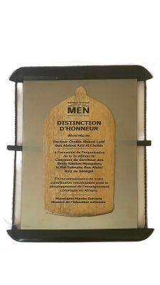 منح معالي وزير التربية الوطنية في جمهورية السنغال، السيد مصطفى مامبا غراسي، وسام الشرف الوطني للتربية والتعليم لخدمة الوحيين ونشر الوسطية والاعتدال، لمعالي وزير الشؤون الإسلامية والدعوة والإرشاد بالمملكة العربية السعودية الشيخ الدكتور عبداللطيف بن عبدالعزيز آل الشيخ، وذلك تقديرًا لجهوده المباركة وإسهاماته البارزة في خدمة القرآن الكريم والسنة النبوية.