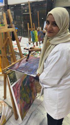 التشكيلية ميساء مصطفى تقدم ورشة أساسيات الفن التجريدي ل (20) فنانة واعدة ومن ذوي الهمم