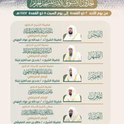 • رئاسة الشؤون الدينية بالحرمين الشريفين توضح الجدول الأسبوعي لأئمة الحرمين الشريفين من يوم الأحد 2 ذو القعدة إلى يوم السبت 8 ذو القعدة 1447هـ