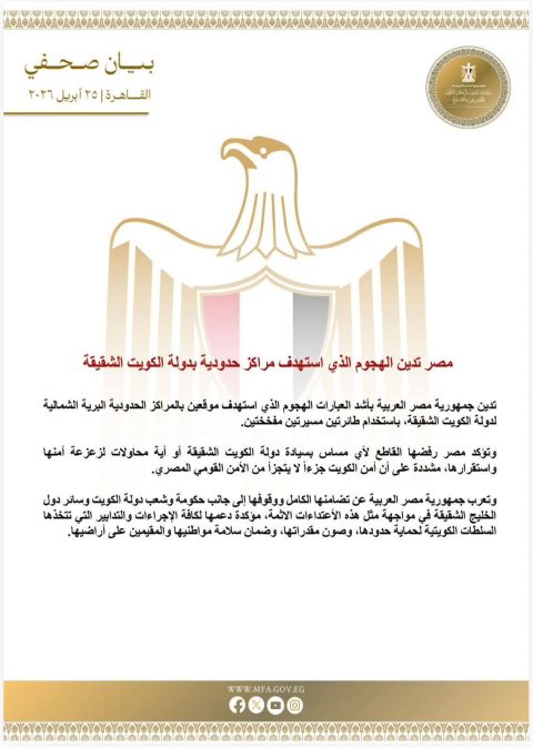 مصر تدين الهجوم الذي استهدف مراكز حدودية بدولة الكويت الشقيقة